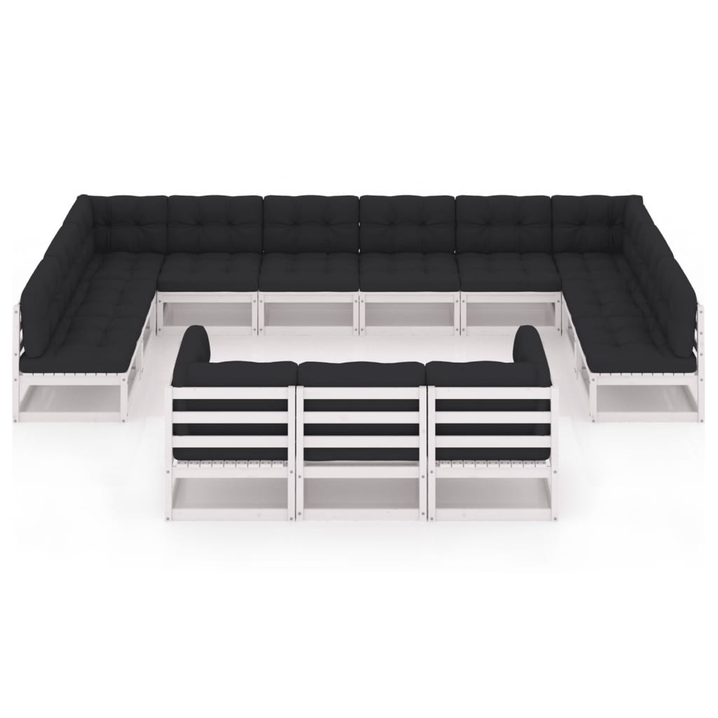 vidaXL 13 Piece Garden Lounge Set with Cushions White Solid Pinewood