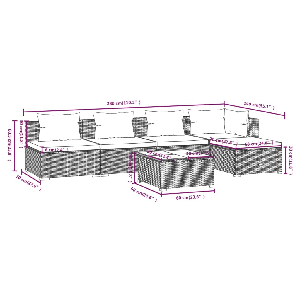 vidaXL 6 Piece Garden Lounge Set with Cushions Poly Rattan Brown