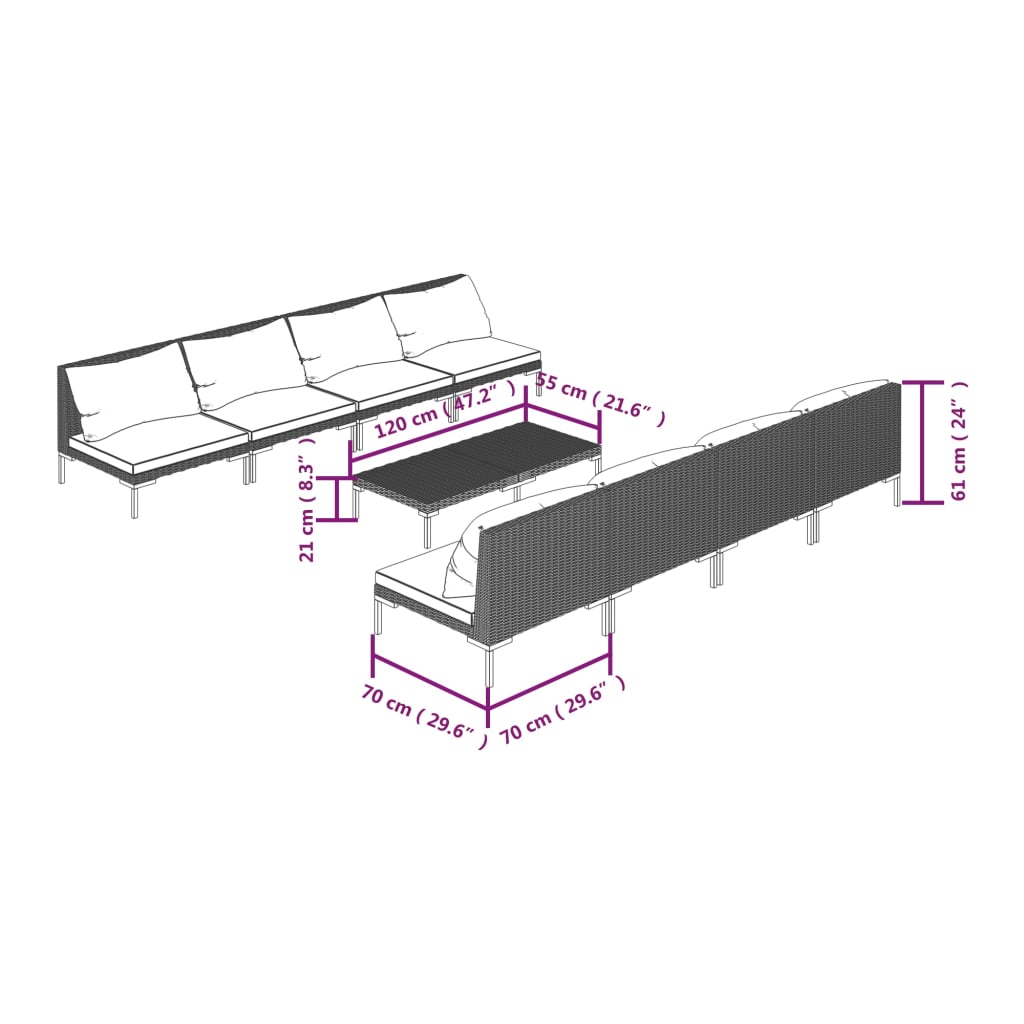 vidaXL 9 Piece Garden Lounge Set with Cushions Poly Rattan Dark Grey