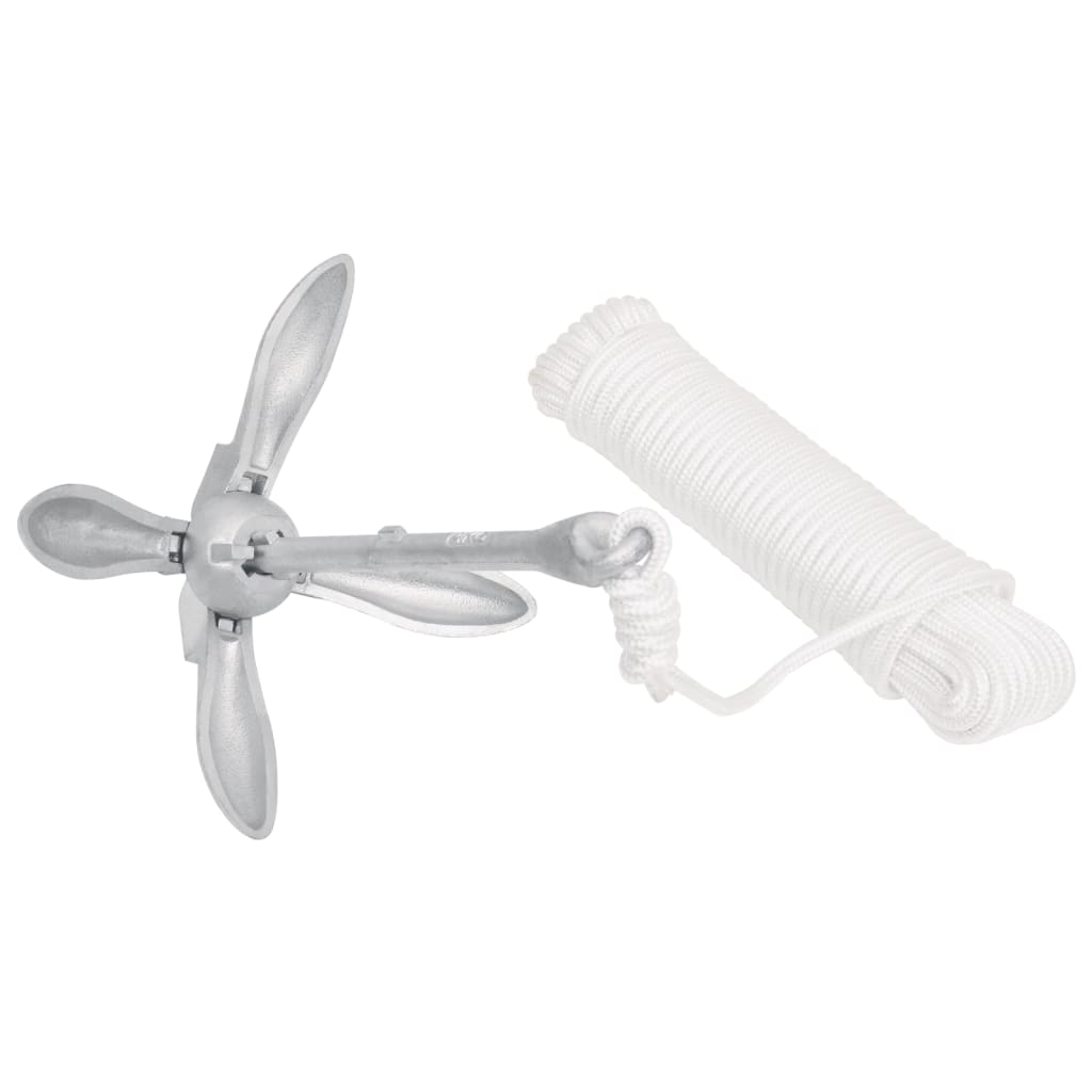 vidaXL Folding Anchor with Rope Silver 8 kg Hot Dip Galvanized Cast Iron