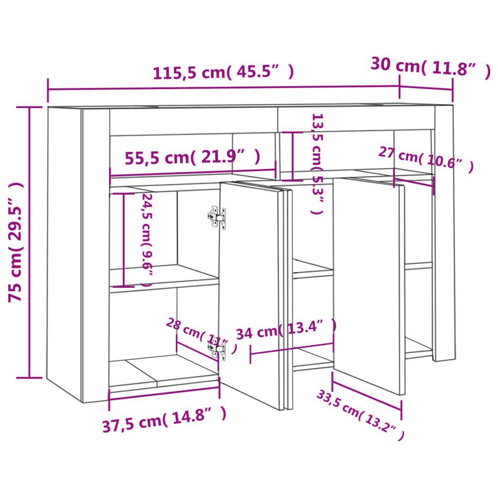 vidaXL Sideboard with LED Lights Black 115.5x30x75 cm