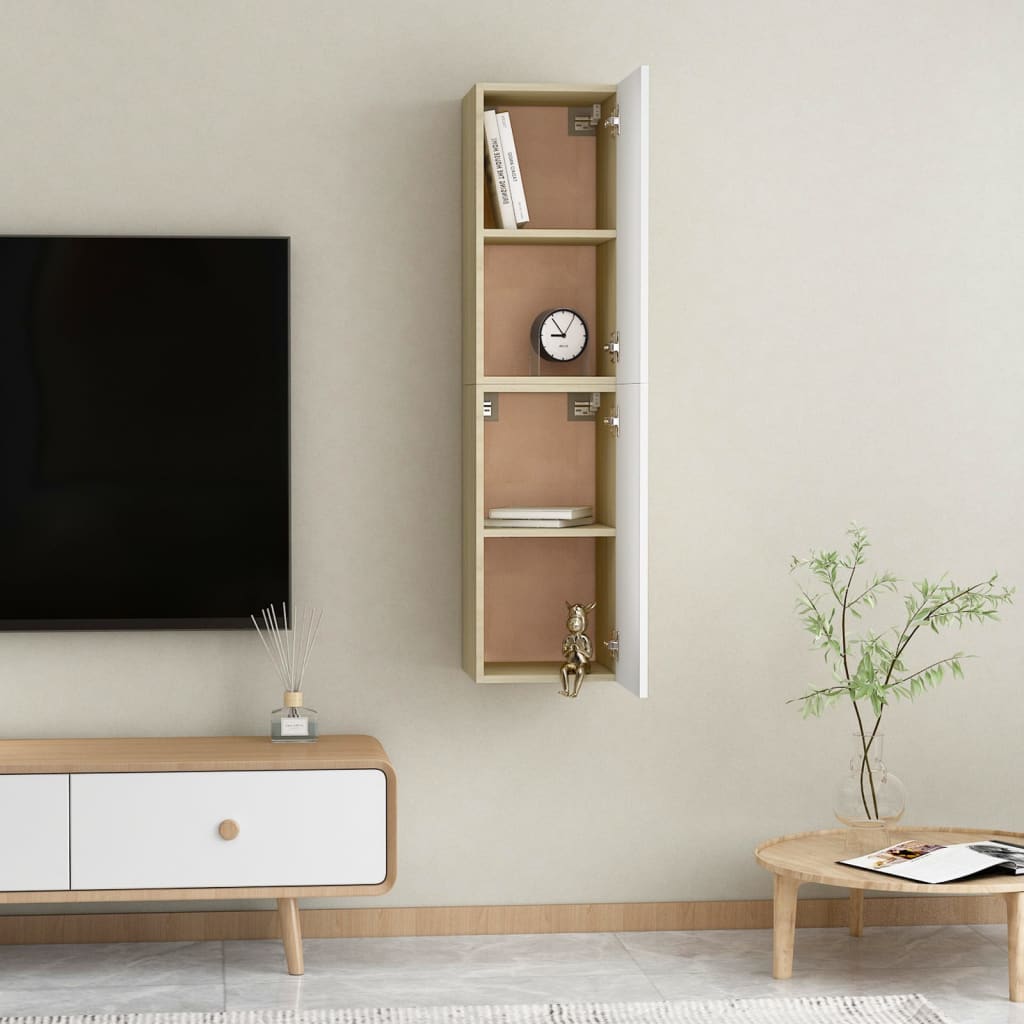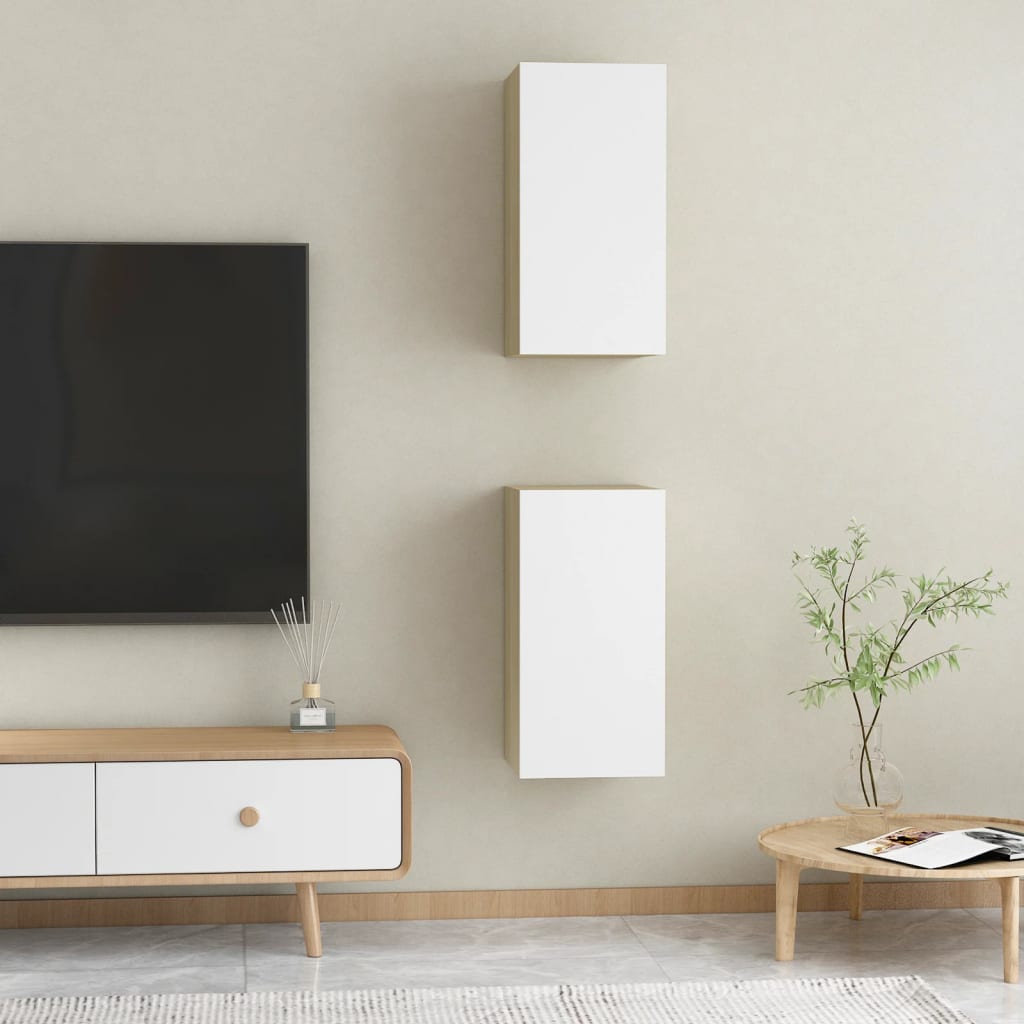 vidaXL TV Cabinets 2 pcs White and Sonoma Oak 30.5x30x60 cm Engineered Wood